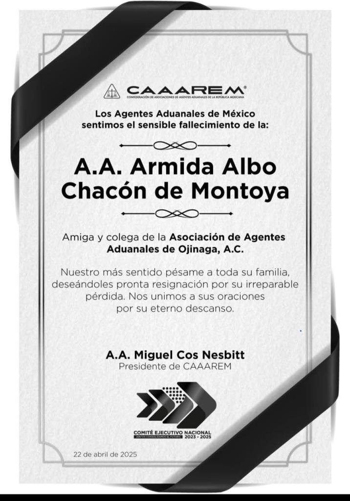 Lamentamos Comunicar el Sensible Fallecimiento de Doña Armida Albo Chacón de Montoya el día de hoy.