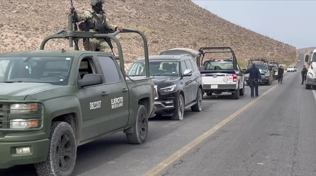 Elementos de la Agencia Estatal de Investigación en coordinación con elementos de la Secretaría de Seguridad Pública Estatal, del Ejército Mexicano y de la Guardia Nacional, realizan operativos luego del reporte de un enfrentamiento armado la madrugada de este miércoles en la carretera Ojinaga-Chihuahua en el municipio de Aldama.