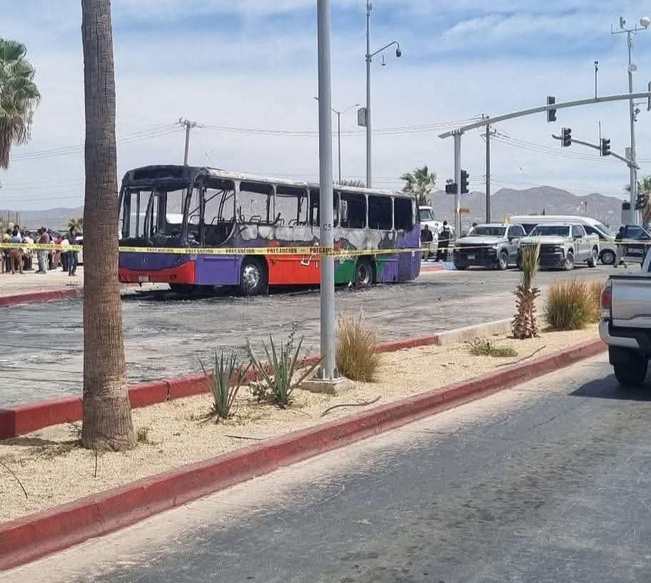 En Los Cabos, Baja California Sur se reporta la quema de camiones de transporte público con pasajeros a bordo.
