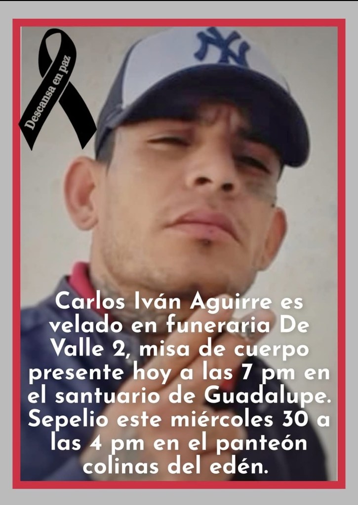GENERAL,LOCAL,OBITUARIOS A familiares y Amistades de Sr. Carlos Iván Aguirre Hernández se les informa que su cuerpo está siendo velado funeraria del valle 2 Misa hoy a las 7:00 pm en el santuario Imagen 29 de abril de 2025 mone1970 Deja un comentario Mañana se trasladará a Colinas del Eden 4:00 pm. 🌎OJINAGANoticias/Obituarios Comparte esto: Haz clic para compartir en X (Se abre en una ventana nueva) X Haz clic para compartir en Facebook (Se abre en una ventana nueva) Facebook Haz clic para compartir en WhatsApp (Se abre en una ventana nueva) WhatsApp Haz clic para compartir en Threads (Se abre en una ventana nueva) Threads Haz clic para compartir en X (Se abre en una ventana nueva) X Relacionado