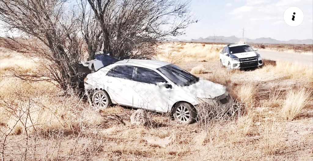 CAMARGO.- Un lamentable accidente al salirse un vehículo de la carpeta asfáltica ocurrió durante la tarde del martes en el kilómetro 76 de la carretera Camargo a Ojinaga.