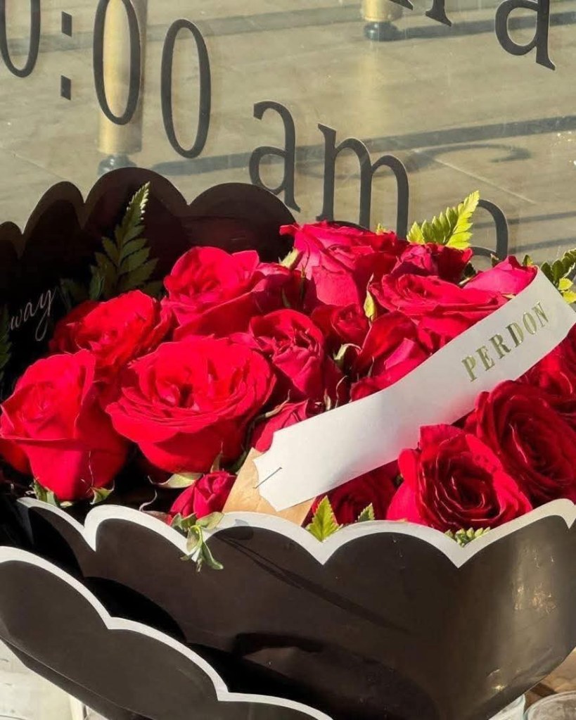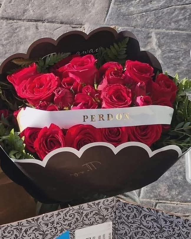Alguien se siente culpable por lo de Valeria. Hoy dejaron un arreglo de 24 rosas rojas, con un listón blanco y la leyenda «PERDÓN», en la entrada de la estética de Valeria Márquez en donde sucedió el asesinato de la joven.