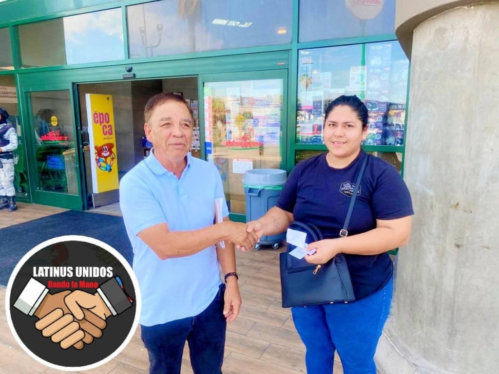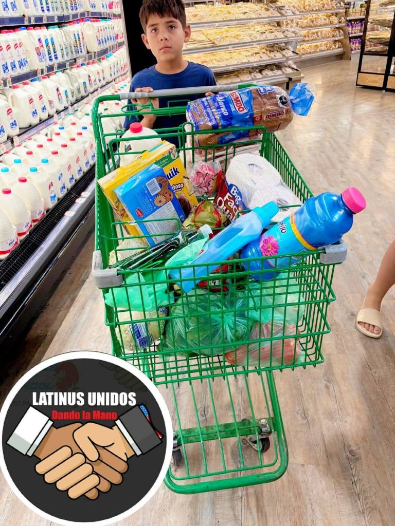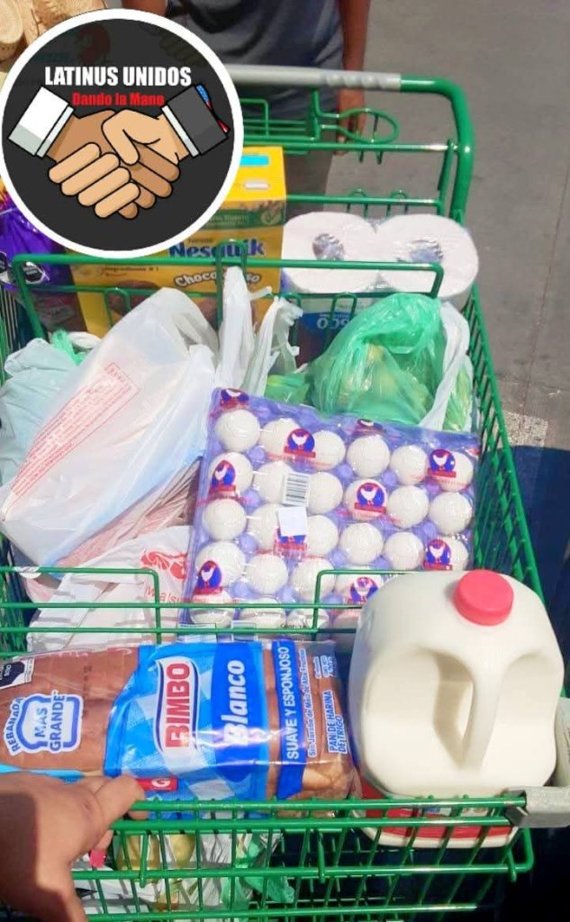 Latinus Unidos dando la mano es un grupo solidario que apoya cada mes a dos familias con despensas de alimentos para ayuda en su economía familiar y selecciona bajo un sorteo aquellas que son consideradas con más necesidad y que de preferencia cuentan con niños.