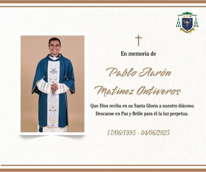 La Diócesis de Nuevo Casas Grandes se une en oración por la familia de nuestro diácono Pablo Aarón, quien ha partido el día de hoy a la casa del Padre🙏🏻