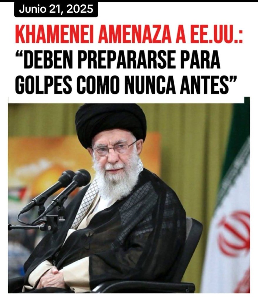 Teherán / Washington.– El Ayatolá Ali Khamenei, Líder Supremo de Irán, emitió una dura advertencia al gobierno de Estados Unidos, luego de que este último confirmara ataques aéreos en tres instalaciones nucleares iraníes: Fordow, Natanz y Esfahán, llevados a cabo en coordinación con Israel.