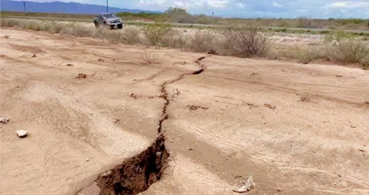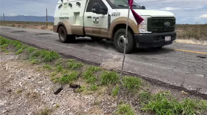 Ahora conductores dieron a conocer una nueva falla geológica que al parecer también causó daños a la carretera a la altura del rancho El huérfano ubicada a la altura del kilómetro 83 + 500 a unos metros del entronque a la carretera de cuota hacia Ojinaga.