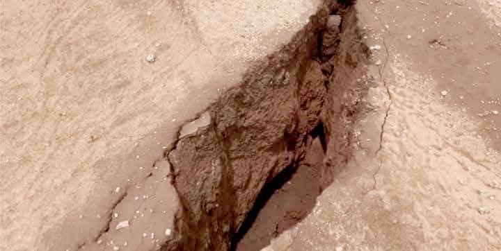 La falla geológica se extiende aproximadamente 500 metros hacia el interior de una propiedad.
