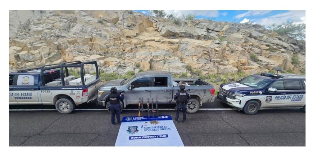 Elementos de la Secretaría de Seguridad Pública del Estado (SSPE) aseguraron un vehículo sobre la carretera Chihuahua-Ojinaga, a la altura de “La Mula”. La unidad fue rastreada y localizada en presunto estado de abandono, y en su interior se encontraron diversas armas de fuego largas.