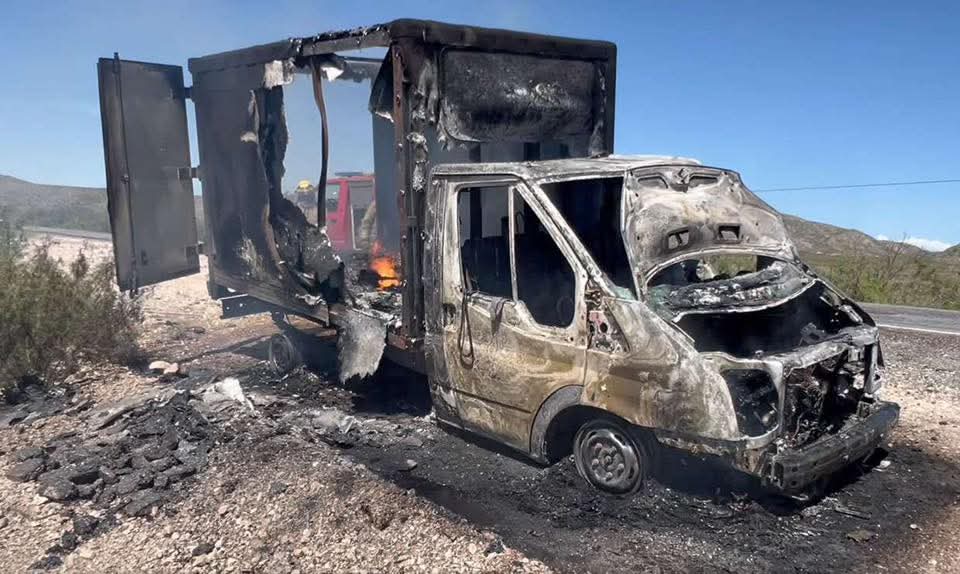 El fuego destruyó completamente el vehículo, el cual iba vació y se dirigía a Ojinaga.