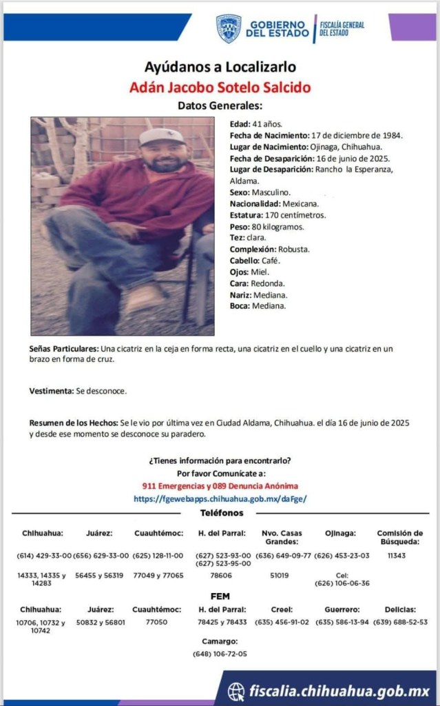 El 22 de junio fueron localizados cuatro cuerpos en una brecha que conduce al panteón de Coyame, luego de varios días las autoridades identificaron a uno de las víctimas, quien llevaba el nombre de Adán Jacobo S. S. de 41 años, mientras de que hasta ayer faltaban de identificar a las otras tres personas.