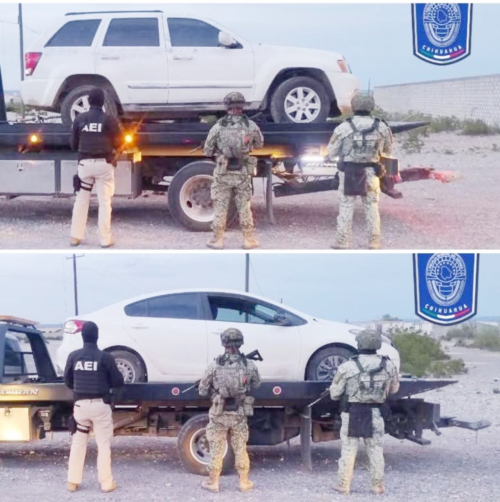 Elementos de la Agencia Estatal de Investigación (AEI), en coordinación con el Ejército Mexicano, localizaron ayer dos vehículos abandonados en el camino que conecta La Estación con El Mulato, en el municipio de Ojinaga, como parte de las acciones de seguridad en la región.