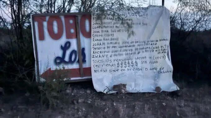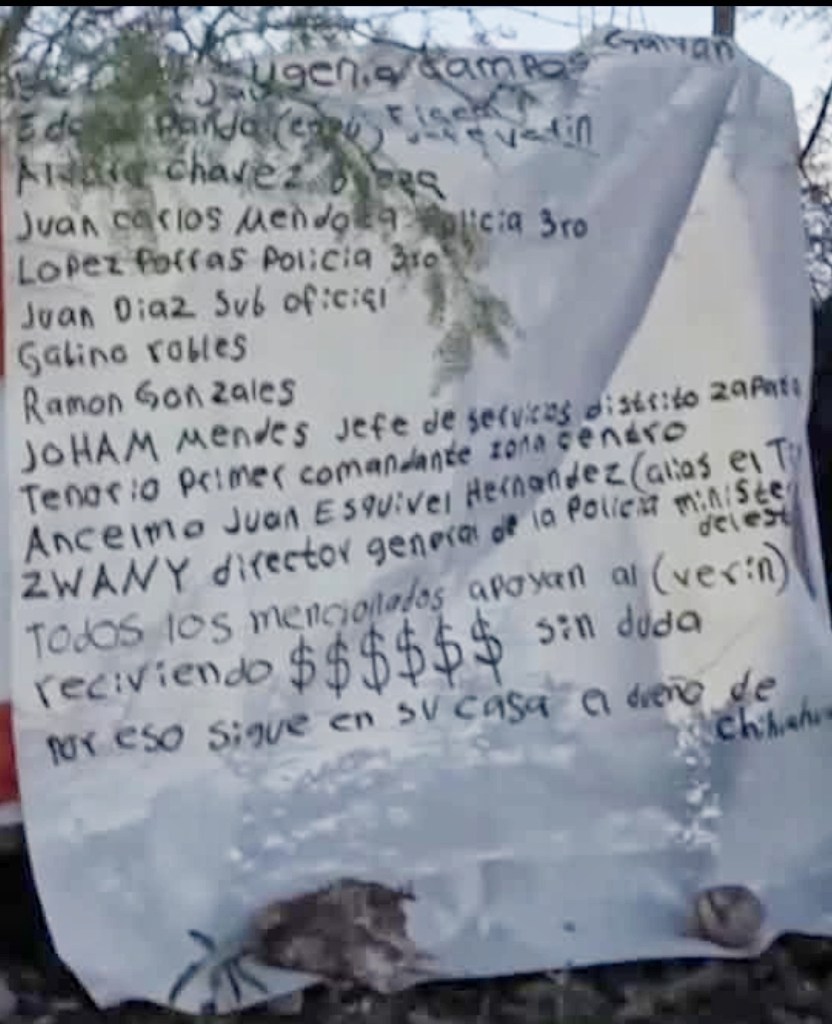 Fue el sábado por la tarde que se reportó la presencia de esta manta, en donde ligaban en el mensaje a mandos policiales con Salvador Humberto S.M., alias «El Señor de la V», así como a propios funcionarios del Estado.