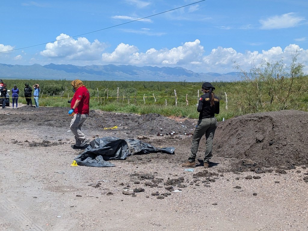 Esta mañana fueron localizados dos cuerpos sin vida a un costado de la carretera aldama a ojinaga a la altura del km 47 a 17 km de la ciudad de Aldama.