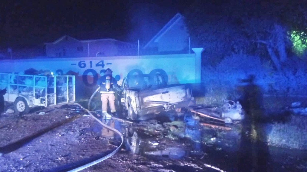Ante reportes, los bomberos acudieron al sector del Residencial Leones, ubicado por la carretera Aldama a Chihuahua, donde estaba un vehículo en llamas, al igual que contenedores de basura.