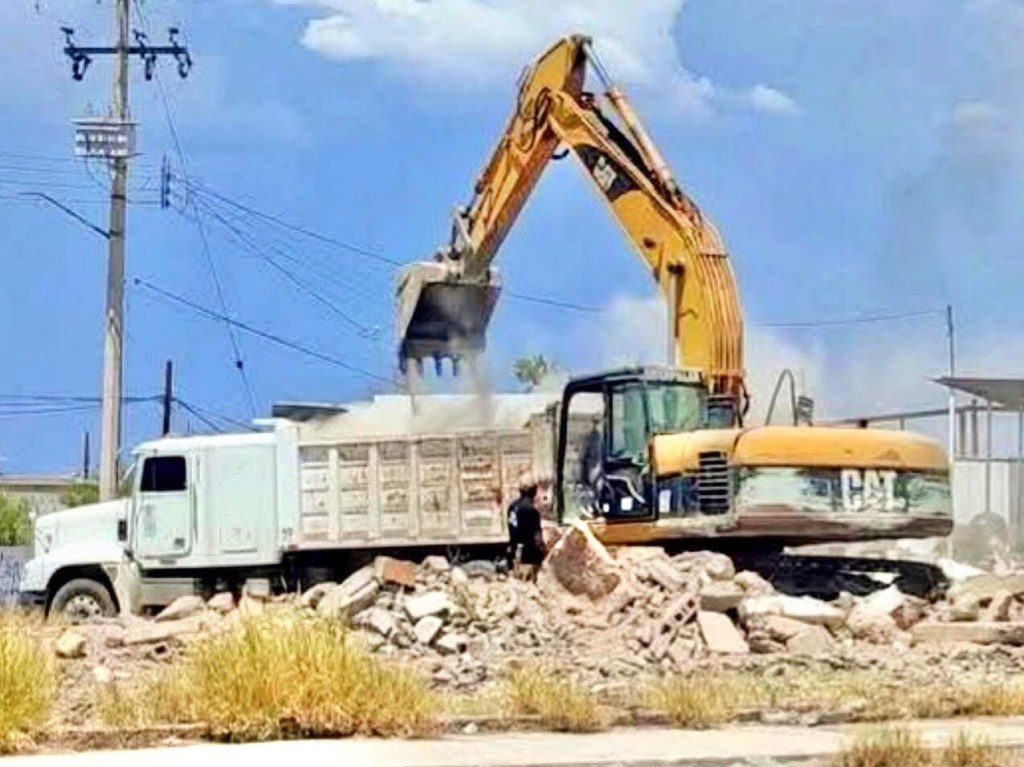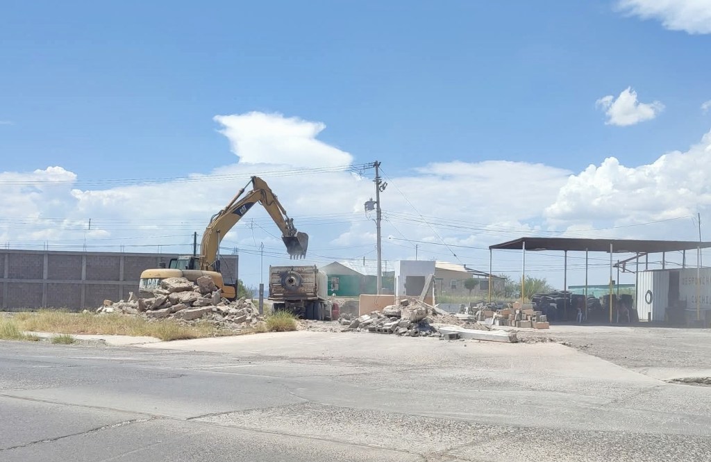 Ojinaga, Chih.- La mañana de este lunes un equipo pesado llegó a las calles independencia y Zaragoza, lugar donde se contruian las instalaciones de una gasera y empezó a demoler las bardas y cuartos de oficinas así como las bases donde estarían instalados los tanques de gas para dar servicio a la ciudadanía.