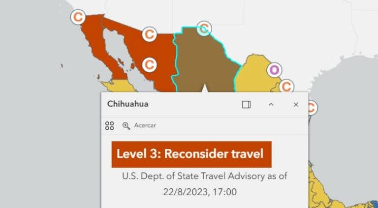 Específicamente, el Departamento posicionó al estado de Chihuahua en el nivel 3 de categoría de riesgo que significa reconsiderar viajar.