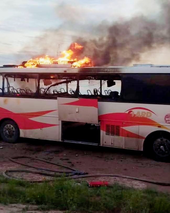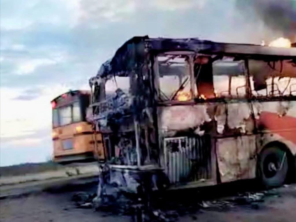 El camión de pasajeros que se incendio está tarde a la altura del kilómetro 6 de la carretera libre Camargo a Jiménez provenía de la ciudad de ojinaga y pasajeros manifestaron que había estado atravesado en la carretera Ojinaga a Camargo.