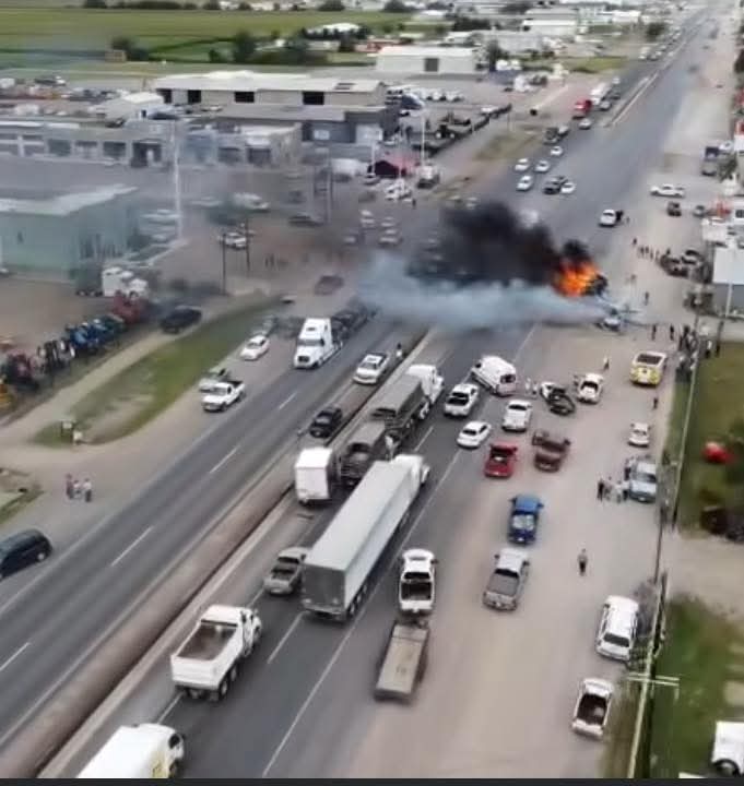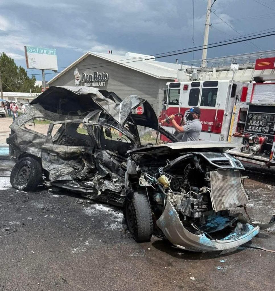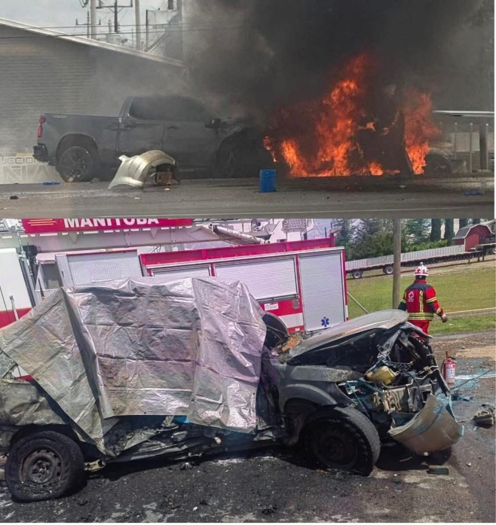 Cuauhtémoc, Chih.- La tarde de este viernes 29 de agosto, un fuerte accidente múltiple en el kilómetro 21+500 de la carretera estatal número 5, en el seccional de Álvaro Obregón, dejó como saldo cuatro personas fallecidas donde colisionaron una camioneta doble cabina de modelo reciente y otra unidad tipo SUV, lo que provocó que ambos vehículos se incendiaran minutos después del impacto.