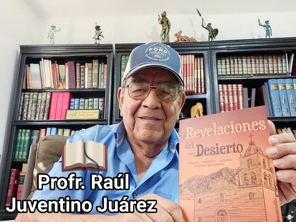 «De una imprenta de Guadalajara hoy recibí a otro de mis hijos.Se llama Revelaciones del Desierto. Un libro que trata la historia completa de cuatro municipios. Ojinaga, Presidio, Coyame y Manuel Benavides. Pronto recibiremos la totalidad de los libros. Esto es solo la muestra para que yo autorice su impresion. Estoy feliz de una nueva meta cumplida».