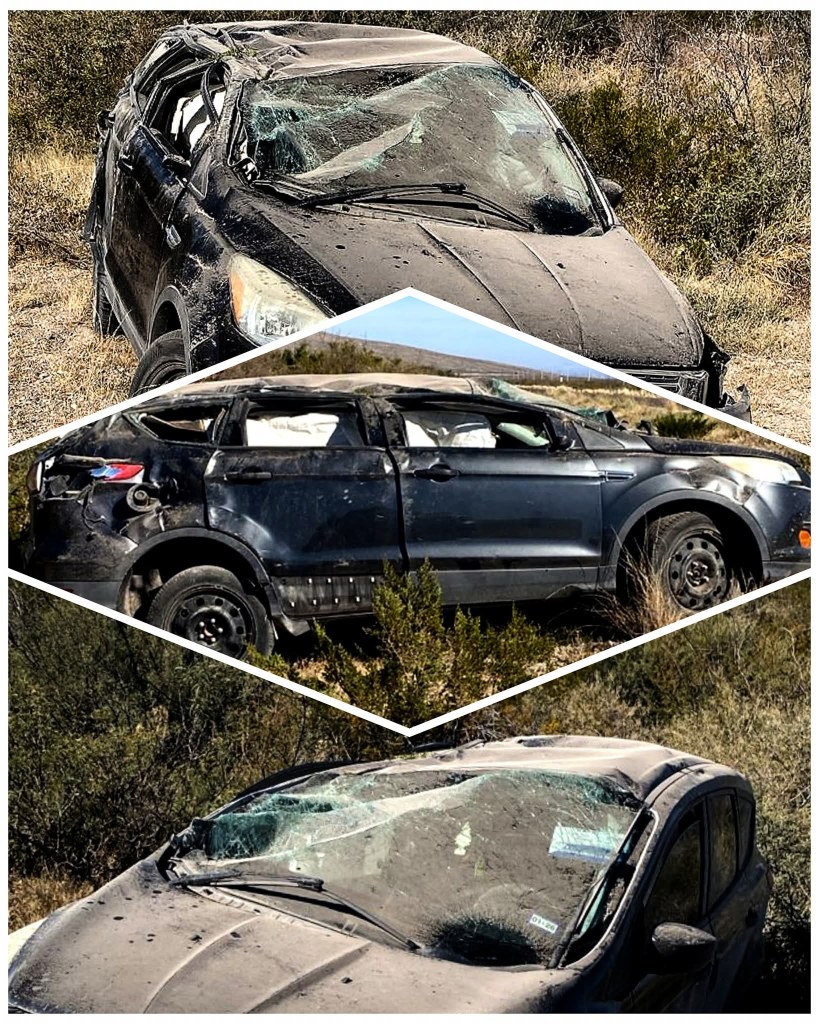 En el lugar quedó un vehículo de la marca Ford tipo sedán color negro con placas del estado de Texas mismo que fue localizado a un costado de la cinta asfáltica en posición normal con daños en la carrocería siendo el más importante en el toldo del lado del copiloto.