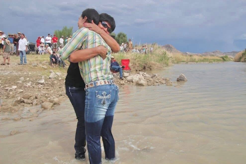 Since 2013, families separated by the 2002 closure of the informal crossing (after 9/11) gather in the middle of the river to hug, swim, eat, listen to music from both sides, and remember when the crossing was free and everyday.