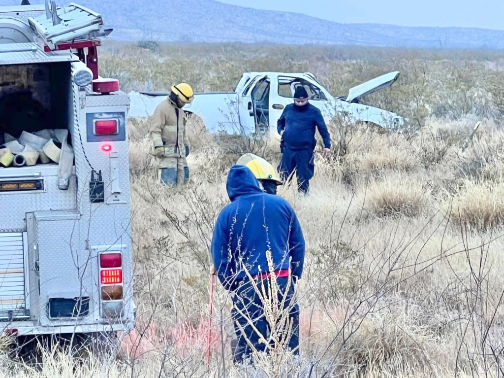 Un conductor y único tripulante de una troca Ford, color blanco, cabina y media, se dirigía por la carretera Aldama a Ojinaga, con rumbo a Estados Unidos, pero se quedó dormido al volante, lo que ocasionó que se saliera del camino y volcara.