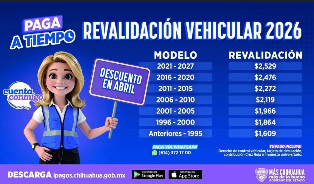 GENERAL 𝘾𝙊𝙎𝙏𝙊𝙎 𝘿𝙀 𝙍𝙀𝙑𝘼𝙇𝙄𝘿𝘼𝘾𝙄𝙊́𝙉 𝙑𝙀𝙃𝙄𝘾𝙐𝙇𝘼𝙍 2026/CUANTO LE TOCA PAGAR?.. Imagen 29 de enero de 2026 mone1970 Deja un comentario En febrero marzo y abril hay costos diferentes Comparte esto: Compartir en X (Se abre en una ventana nueva) X Comparte en Facebook (Se abre en una ventana nueva) Facebook Compartir en WhatsApp (Se abre en una ventana nueva) WhatsApp Compartir en Threads (Se abre en una ventana nueva) Threads Compartir en X (Se abre en una ventana nueva) X Relacionado
