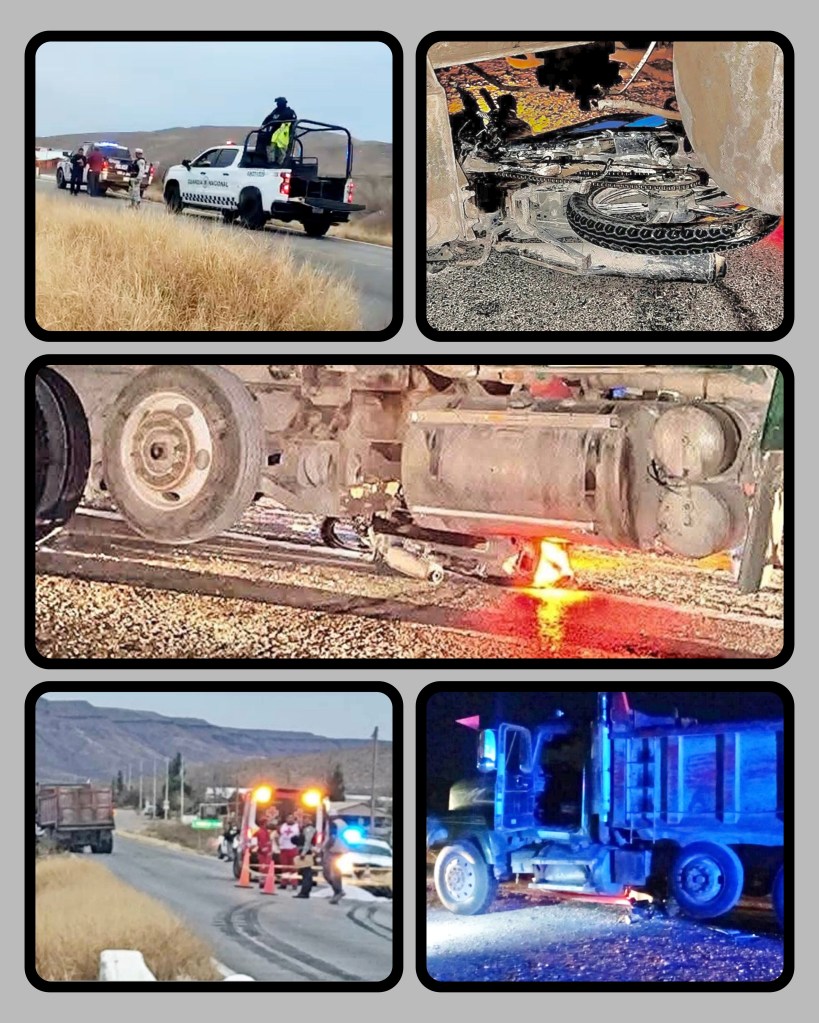 La tarde de este lunes se registró un accidente en la carretera Ojinaga -Camargo a la altura de la comunidad de la mula el cual dejo como saldo de una pareja fallecida ( un hombre y una mujer) quienes viajaban en una motocicleta y quienes fueron embestidos y atropellados por un camión de carga (dompe) muriendo de manera instantánea.