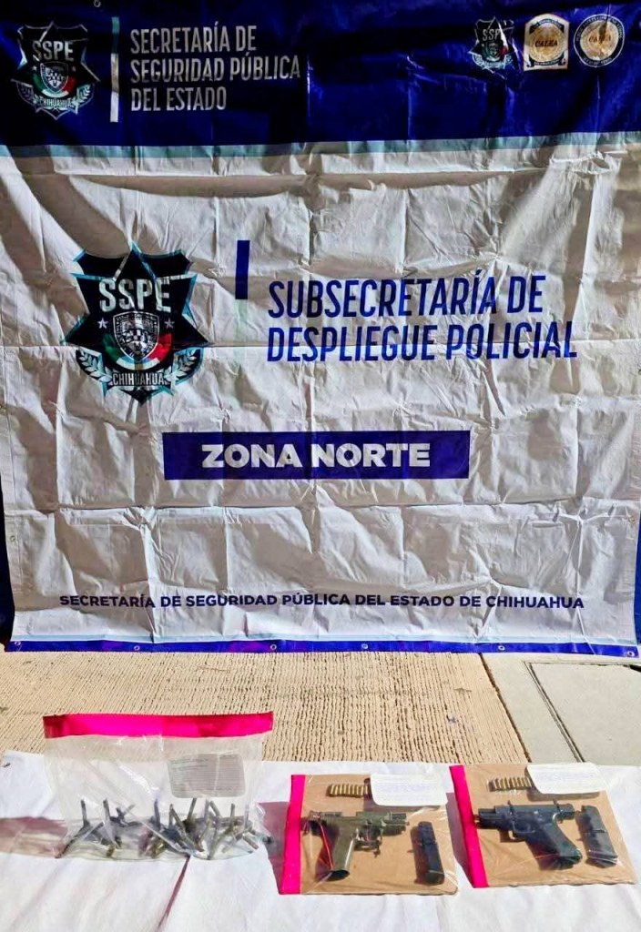 Elementos de la Policía de Despliegue de la Secretaría de Seguridad Pública del Estado (SSPE) realizaron la detención de Luis Enrique H. G. y Juan Manuel S. R., a quienes se les aseguraron dos armas de fuego, en el municipio de Ojinaga.