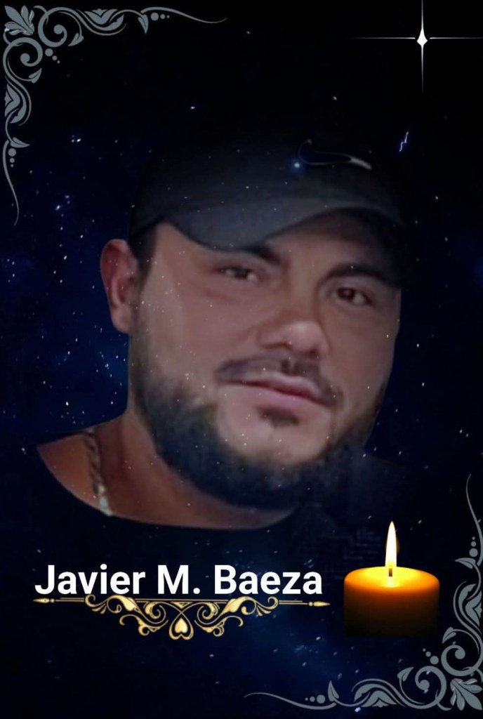 A familiares y amistades de Javier M. Baeza se les comunica su sensible fallecimiento, será velado el viernes 13 de febrero de 12 a 9pm y rosario a las 7pm en la funeraria La Paz 1506 Grandview Ave. Odessa, TX. Su servicio funebre continuara en Ojinaga el Sabado en funeraria De Valle 2 de 12 a 9pm. Misa de cuerpo presente el Domingo en el Santuario de Guadalupe a las 9:30am siguiendo a su sepelio en el panteón Ultimo Refugio. Se les agredece por su tiempo y condolencias de parte de Familia Baeza Hernandez, Baeza Morales y Sanchez Baeza.