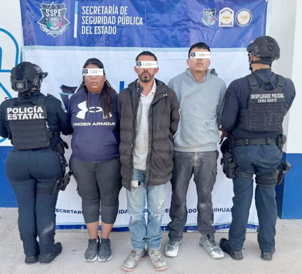Ojinaga.- Elementos de la policía estatal llevaron a cabo el arresto de Sarahí G. R., Álvaro Ángel S. S. y Julián R. R., a quienes se les aseguraron diversas armas de fuego, equipo táctico y droga, en hechos registrados en el municipio de Ojinaga.