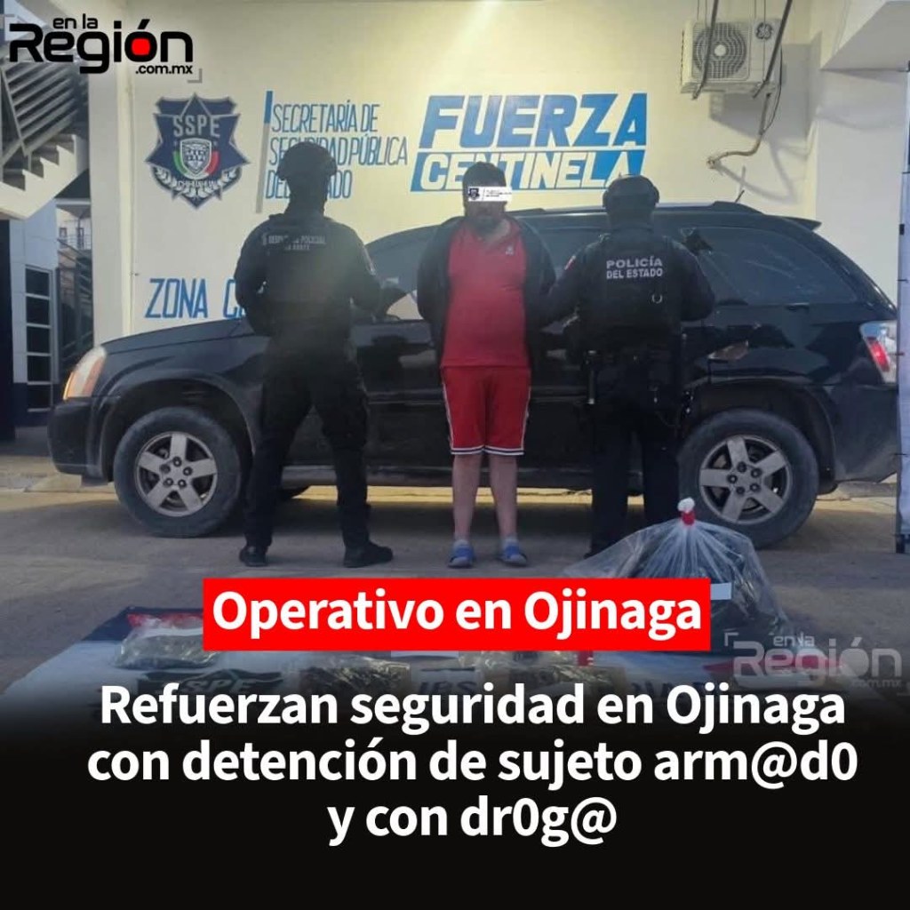 La Policía de Despliegue de la Secretaría de Seguridad Pública del Estado (SSPE) llevó a cabo el arresto de un sujeto en el municipio de Ojinaga, identificado como Eduardo Arath L. L., a quien Y PRESUNTA DROGA se le aseguraron armas de fuego, equipo táctico y presunta droga.