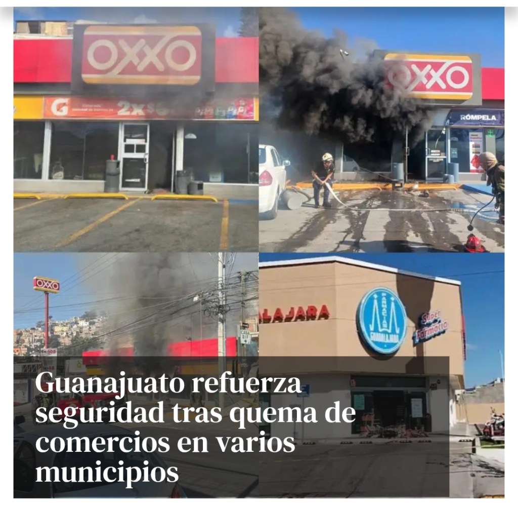 Seis municipios de Guanajuato, incluyendo Guanajuato capital, Irapuato, León, Silao, Moroleón y Purísima del Rincón, registraron la quema de tiendas de conveniencia y farmacias, según informó la Secretaría de Seguridad y Paz del estado. Las autoridades atribuyen estos incidentes a operativos recientes del gobierno federal en el estado vecino de Jalisco. Afortunadamente, no se reportaron personas lesionadas, aunque los daños materiales han sido considerables en los comercios afectados.