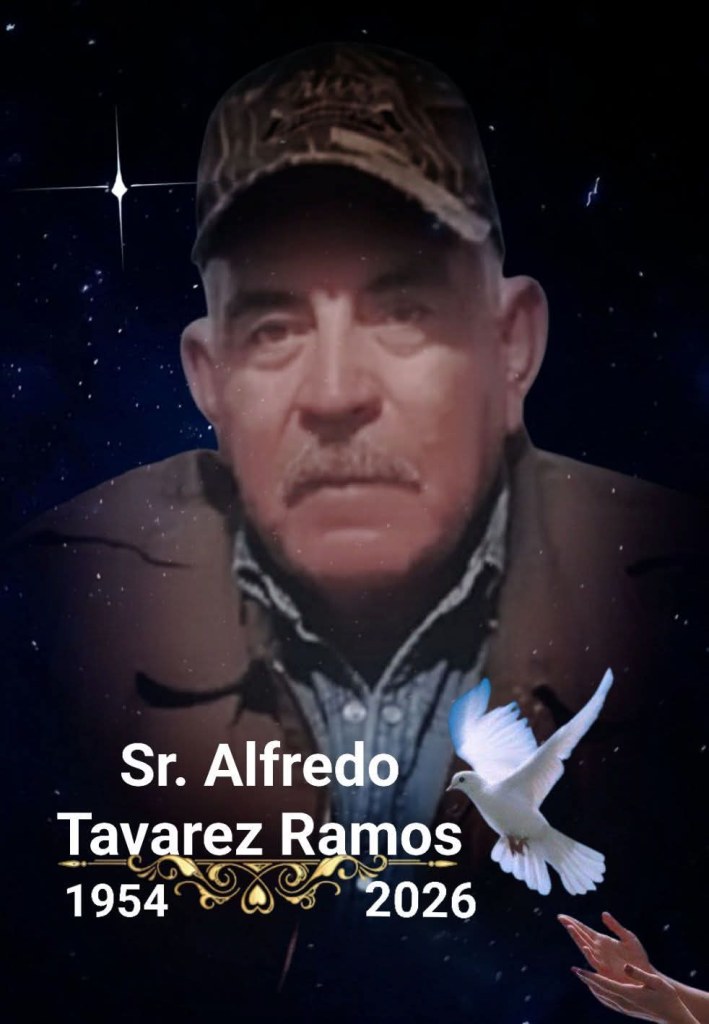 A familiares y amistades del Sr. Alfredo Tavarez Ramos, se les comunica su sensible fallecimiento el día de hoy en Ojinaga a la edad de 72 años.