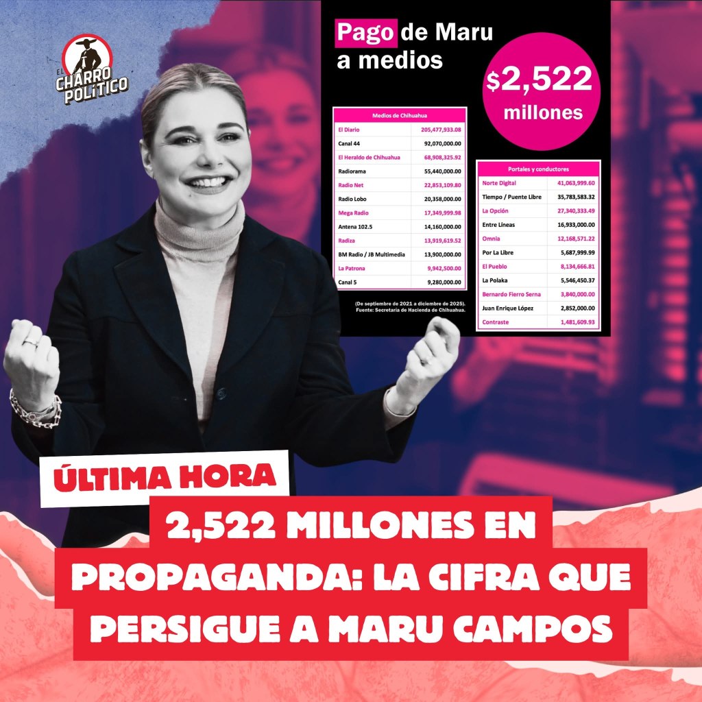 La administración de María Eugenia Campos Galván habría destinado 2 mil 522 millones 611 mil 845 pesos a comunicación social entre septiembre de 2021 y septiembre de 2025, de acuerdo con informes oficiales de la Secretaría de Hacienda estatal. El monto incluye convenios con televisión, radio, prensa escrita, medios digitales, agencias de marketing, productoras audiovisuales y estrategias de posicionamiento en redes.