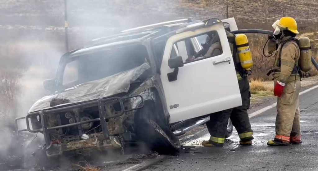 Según se informó de manera extraoficial la causa de este accidente fue por a decir del conductor se le amarraron las cuatro llantas lo que provocó que provocará el incendio que terminó por consumir el vehículo tipo Hummer al parecer de reciente modelo y al parecer procedente de la ciudad de Ojinaga.