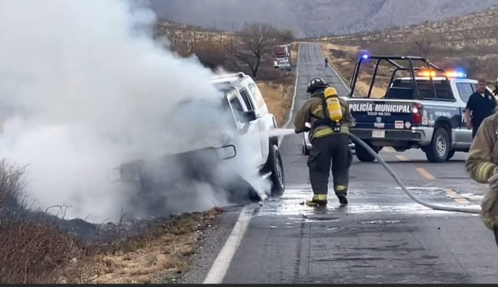 Un vehículo terminó en llamas luego de sufrir una falla mecánica cuando circulaba por la carretera con dirección a la ciudad de Aldama a la altura del km 46.