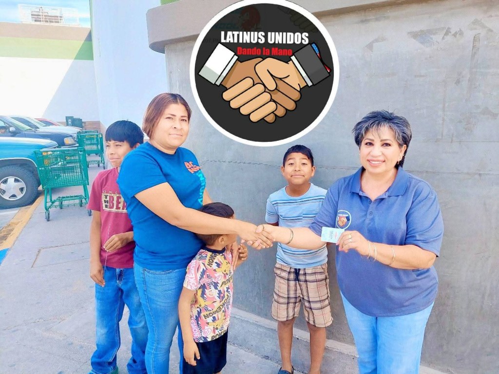 Latinus Unidos dando la mano es un grupo solidario que apoya cada mes a dos familias con despensas de alimentos para ayuda en su economía familiar y selecciona bajo un sorteo aquellas que son consideradas con más necesidad y que de preferencia cuentan con niños.