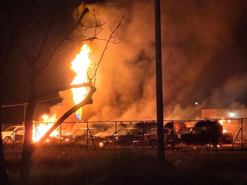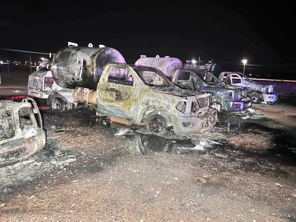 Aldama, Chih.- Un fuerte incendio consumió siete pipas de gas en la planta Gas Noble, ubicada entre la etapa 1 y la etapa 2 del fraccionamiento Álamos, luego de que sujetos desconocidos provocaron el siniestro al lanzar, presuntamente, una bomba molotov a una de las pipas.