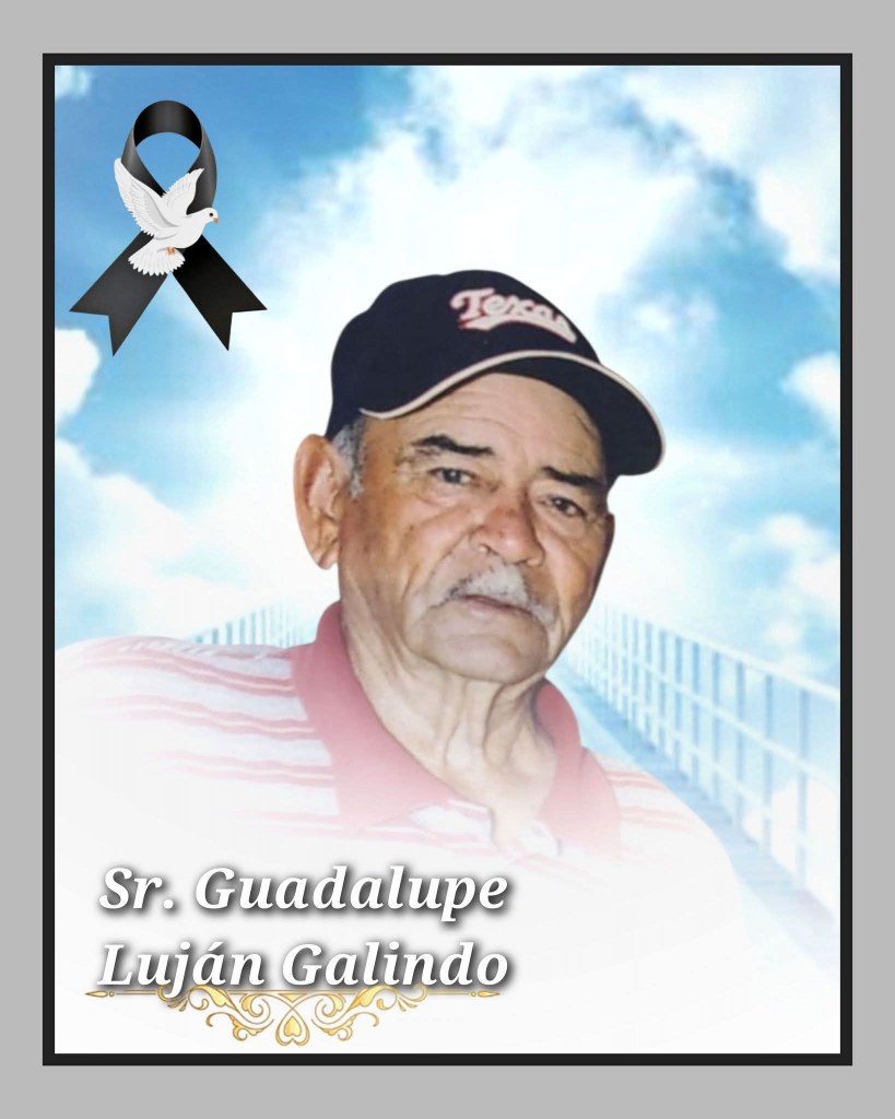 A familiares y amistades del Sr. Guadalupe Luján Galindo, se les comunica su sensible fallecimiento en Ojinaga a la edad de 93 años; Es velado en funeraria De Valle ll.