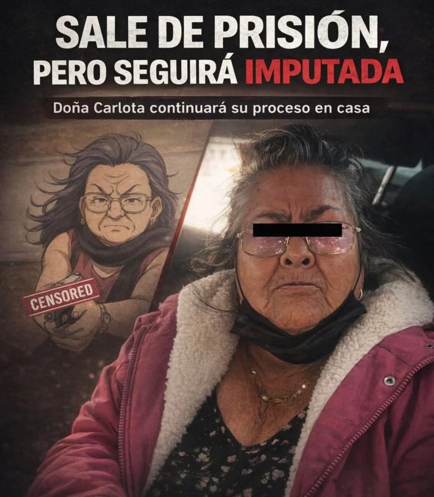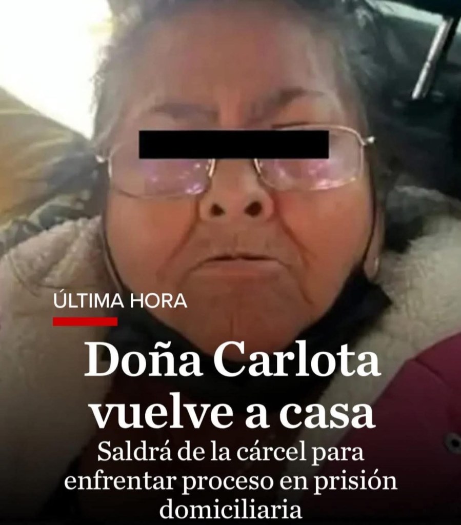 Un juez de control autorizó que Carlota ‘Doña Carlota’, de 74 años, abandone el centro penitenciario para continuar su proceso penal bajo la medida de prisión domiciliaria, tras concedérsele un amparo por razones humanitarias.