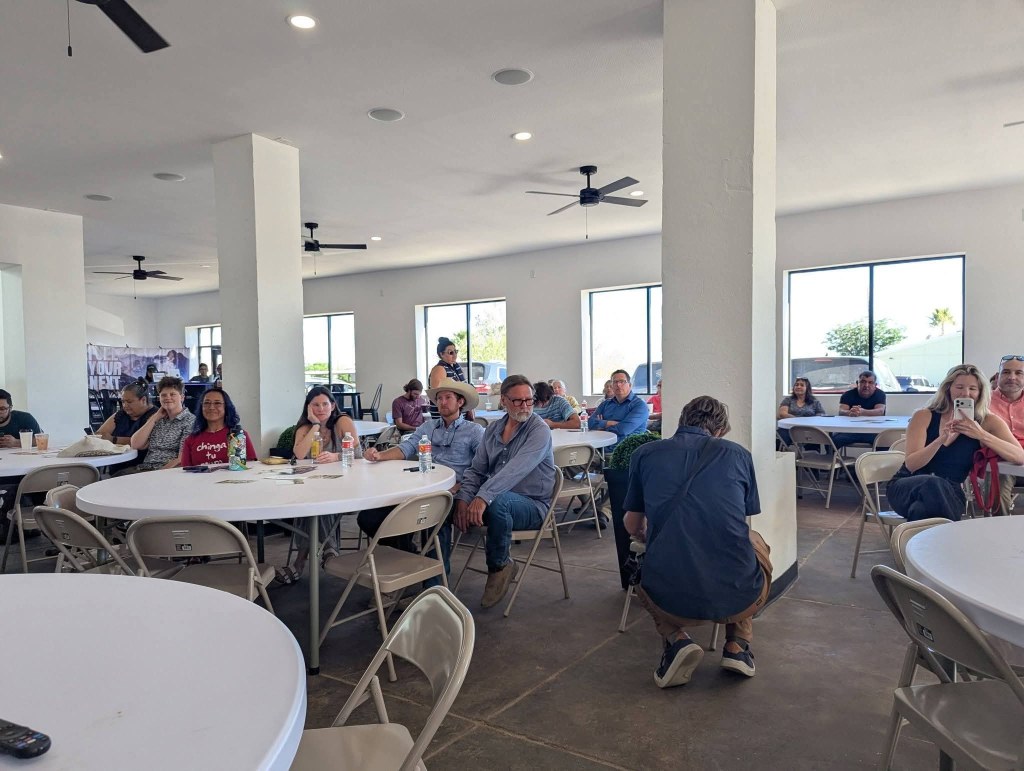 La campaña para detener el muro fronterizo en el condado de Presidio continúa, y necesitamos que TODOS y cada uno de nosotros en Presidio formemos parte de este equipo. Ayer por la tarde tuvimos un excelente foro sobre el muro fronterizo en «The Station». Esto no habría sido posible sin la generosidad de Fernando Juarez e Irma Juarez , propietarios del recinto; así que, ¡MUCHAS GRACIAS por brindarnos un lugar perfecto para reunirnos!