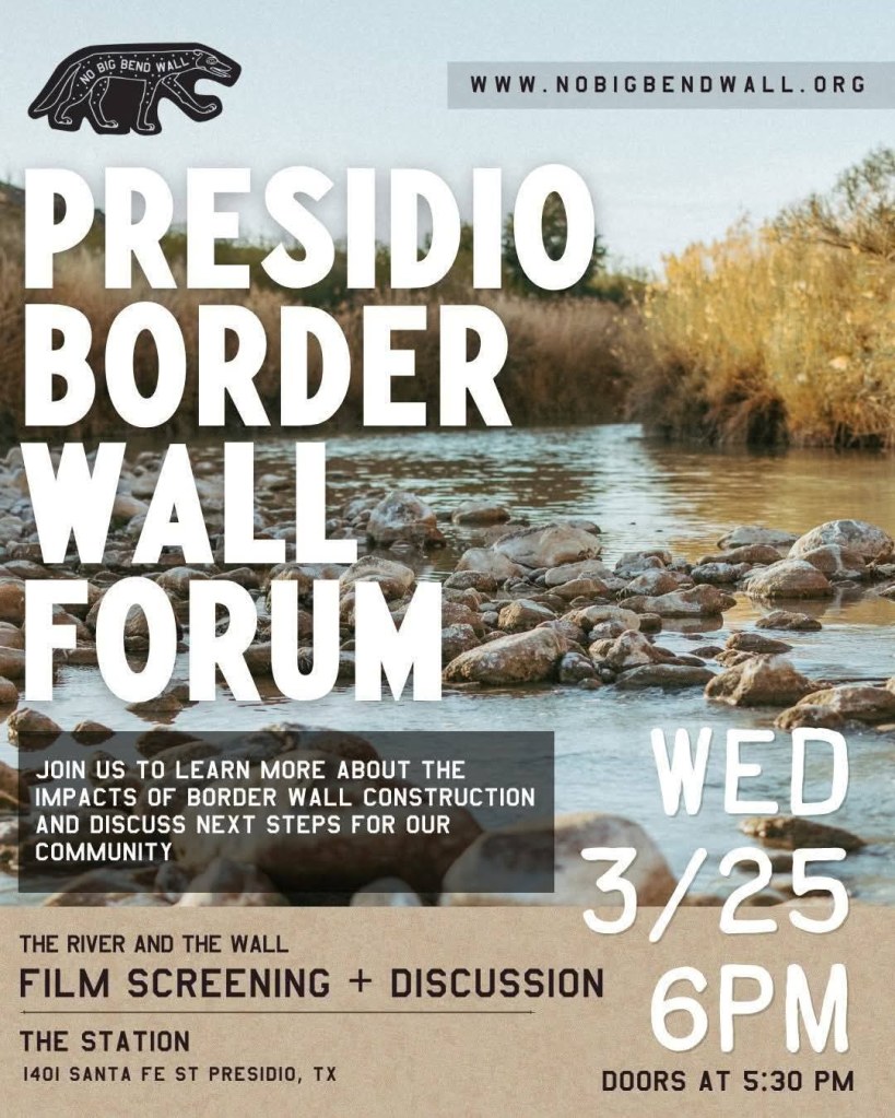Asimismo, un ENORME agradecimiento a Carrera Denisse y a Yosdy Valdivia Marrufo por liderar el esfuerzo de nuestra comunidad de Presidio para oponerse al muro fronterizo. Esta lucha es por nuestro sustento hoy, y por todos aquellos que aún están por nacer.
