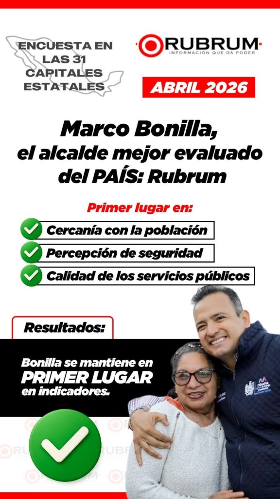 H. Cd. de Chihuahua.- ¡LA CAPITAL SE LLEVA EL ORO! Según la encuesta RUBRUM de abril, Chihuahua es el primer lugar nacional en seguridad y servicios públicos entre todas las capitales del país 📉. El alcalde Marco Bonilla salió con la mejor calificación en desempeño y cercanía, dejando atrás a ciudades como Monterrey y Mérida con un contundente 7.95 de aprobación 📉.