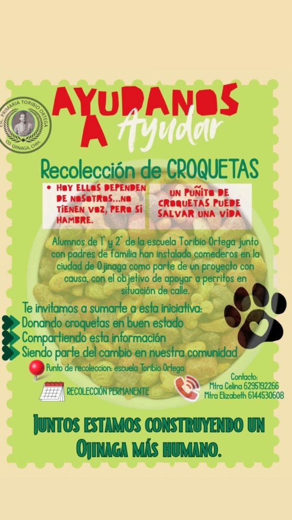 La invitación está abierta a toda la ciudadanía para sumarse a esta causa y contribuir a que ningún perro en situación de calle pase hambre en Ojinaga.