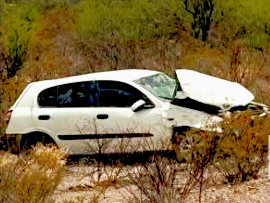 Según los primeros reportes, un Nissan Almera de color blanco, en el que viajaban dos jóvenes con destino a la ciudad de Chihuahua, salió del camino por causas aún no determinadas.