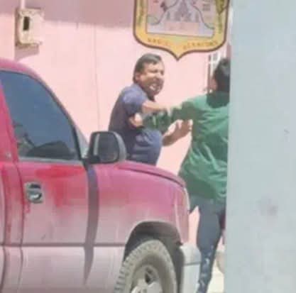 El secretario del Ayuntamiento de ManuelBenavides, Ricardo Valle Payén, camisa verde y el Director del Órgano Interno de Control, profesor Ignacio Salazar, del municipio de Manuel Benavides, se dieron un buen round en la via pública. El pleito fue porque el Secretario quiso poner como empleada del municipio de Manuel Benavides a su novia y el director del órgano interno del control no accedió. Entonces el secretario fue molesto a la casa del profesor Ignacio y le quebró unos vidrios y casi le tumbó la puerta a patadas y el profesor salió molesto y le puso sus trancazos. Todo esto sucedió en las remotas tierras de Manuel Benavides. A todo esto, vale la pena comentar que Ricardo Valle Pen fue candidato a Juez en la pasada de elección.