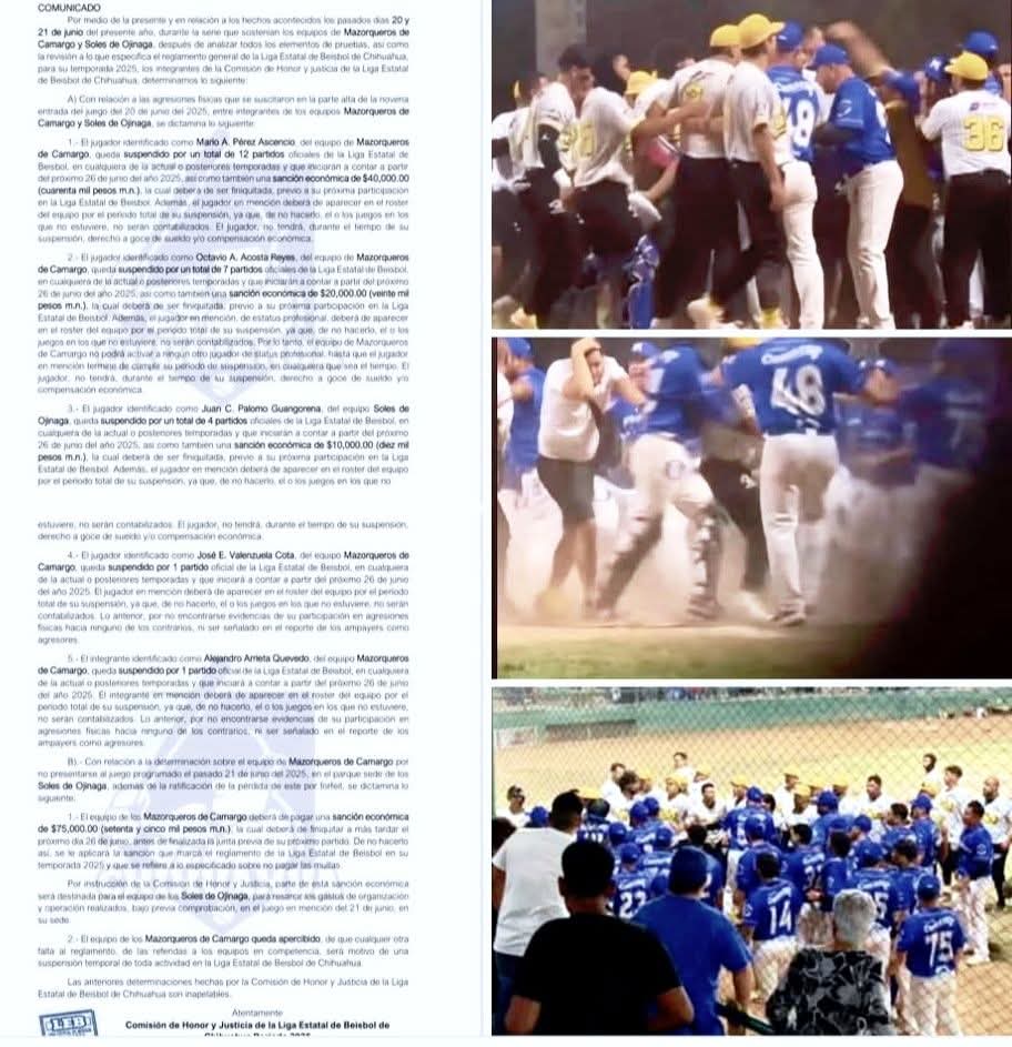 Los aguerridos Soles de Ojinaga lograron superar al poderoso equipo Manzaneros de Cuauhtémoc con un marcador final de 6-5 en un enfrentamiento muy reñido que se prolongó durante poco más de 4 horas con 20 minutos dentro del torneo estatal de béisbol, demostrando la escuadra fronteriza que cuenta con excelente capacidad tanto en la ofensiva como en el pitcheo y que será un difícil oponente ante sus rivales.