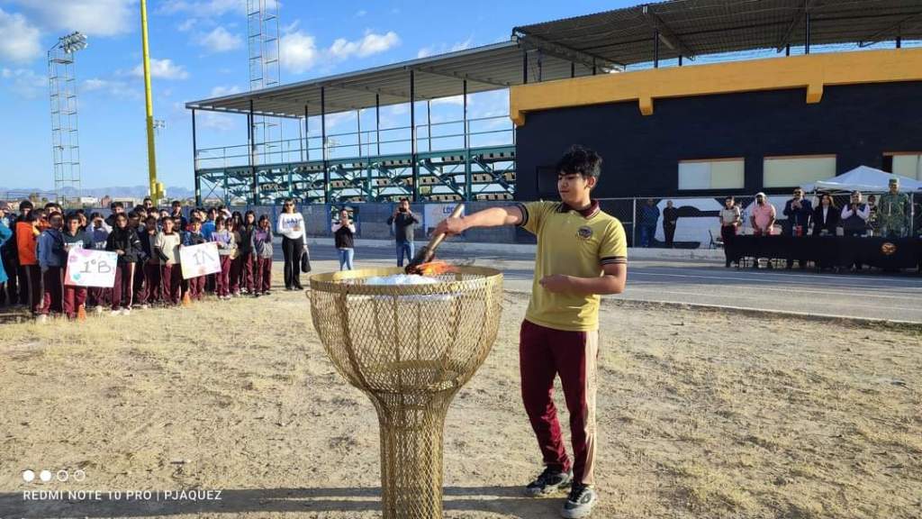 La arenga deportiva estuvo a cargo del C. Cesar Holguin, la alumna Yaquelin González realizó el tradicional juramento deportivo y el fuego olímpico así como el recorrido con la antorcha lo realizó el alumno Oliver Simón Rangel Galindo.