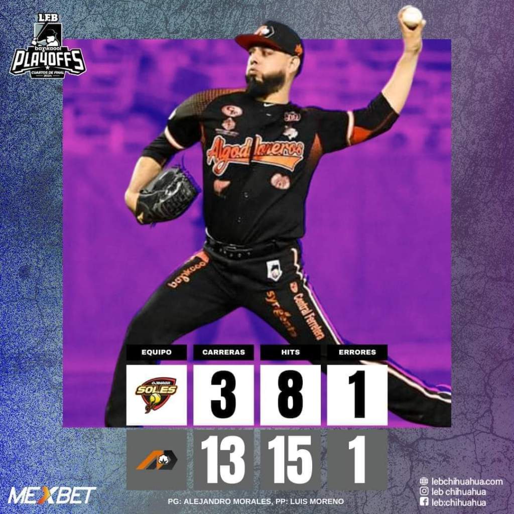 Delicias anotó 10 carreras en la fatídica y finiquita con nocaut el primer choque sobre Soles de Ojinaga 13-3.